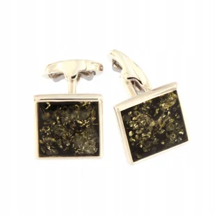 Spinki do mankietów srebrne męskie do koszuli z bursztynem prezent
