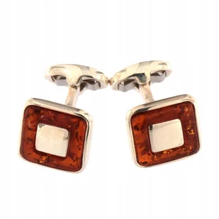 Spinki Do Mankietów Srebrne Męskie Do Koszuli Z Bursztynem Prezent