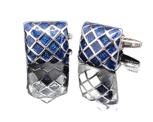 Spinki do mankietów wzór granatowy kwadrat b/d Spinki do mankietów koszuli ze stopu metali. Polerowany na wysoki połysk. Precyzyjnie lakierowane Obrotowe zap...