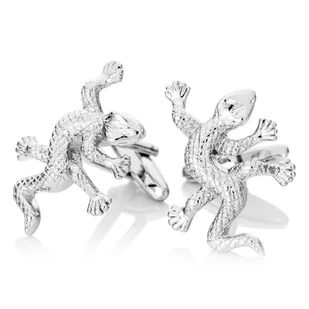 Spinki do mankietów X2 Gekon Spinki do mankietów w kształcie srebrnych gekonów to wspaniały upominek i dodatek do stroju dla każdego miłośnika tych zabawnych i uroczych gadów. Na pewno podbiją również serce zapalonych wspinaczy, ponieważ gekony są symbolem tego sportu. Spinki są odlane ze stali szlachetnej, która nie matowieje w czasie użytkowania i ma właściwości antyalergiczne, a jakość i szczegółowość wykonania zaspokoi gusta najbardziej wymagających klientów. Z takimi spinkami u mankietów z pewnością wyróżnisz się w towarzystwie! Wymiary spinek to 26 x 20 mm. Są w komplecie z eleganckim pudełeczkiem.