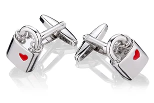 Spinki do mankietów X2 Kłódka z serduszkiem Zwyczaj zawieszania kłódek na mostach w różnych miastach całego świata jest popularny wśród zakochanych osób. Ma ...