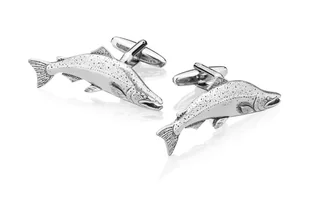 Spinki do mankietów X2 Ryba Łosoś Spinki do mankietów w kształcie łososia to biżuteria unikatowa i niezwykle ciekawie prezentująca się niezależnie od rodzaju...