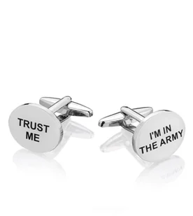 Spinki do mankietów X2 Trust me I'am in Army Zabawne spinki z napisem “Trust me I’m in the army” czyli “Zaufaj mi, jestem w wojsku” to świetny pomysł na poka...