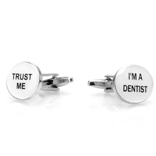 Spinki do mankietów X2 Zaufaj Dentyście! Spinki dla dentysty z poczuciem humoru Spinki „Trust me I’m a Dentist” to idealny prezent i wspaniały dodatek do str...