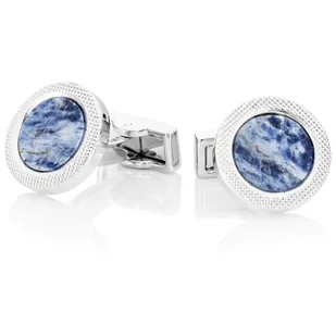 Spinki do mankietów z sodalitem SD-1121 Klasyczne spinki do mankietów wykonane na podstawie ze stali szlachetnej wykończonej pięknym filigranem i ozdobione sodalitem – rzadkim kamieniem szlachetnym w kolorze niebieskim i granatowym, z nieregularnymi, białymi żyłkami lub plamkami. Nieregularny kolor kamienia i intensywna ciemnoniebieska barwa w srebrzystej oprawie stanowią o uroku tego modelu spinek. Świetnie wyglądają na mankietach białej koszuli, skomponowane z dodatkami w kolorze niebieskim. Sodalit jest uważany za kamień czystego umysłu, zgłębiania prawdy i doskonałej komunikacji. Stymuluje zarówno naszą intuicję, jak i umiejętność racjonalnego myślenia w celu poznania sensu i prawdy o rzeczywistości.