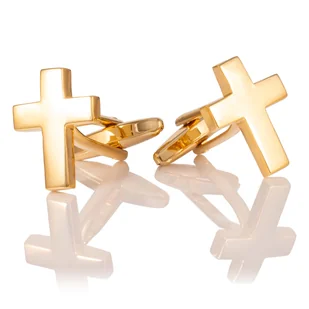 Spinki do mankietów Złoty Krzyżyk X2 AJ740 Te piękne spinki do mankietów w kształcie eleganckich, złotych krzyżyków to wspaniały dodatek do stroju dla religi...