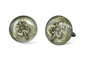 Cudowny pomysł na prezent dla eleganckiego mężczyzny :-) Lilia symbol: majestatu, szczęścia i czystości. - Średnica: ok 2 cm - Wnętrze w kolorze kremowym ze złotymi elementami oraz srebrnymi liliami, - Baza s ...