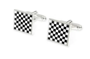 Spinki do Mankietów kwadratowe Wykonane z błyszczącego metalu w kolorze srebra. Czarno - biały wzór szachownicy. Mocne zapięcie na obracaną przekładkę. ✔ Pro...