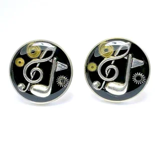 Cudowny pomysł na prezent dla mężczyzny ceniącego różnorodne gatunki muzyki, dźwięki poruszają go do życia i nadają mu sens :-) - Średnica: ok 2 cm - Wnętrze w kolorze czarnym z trybikami i srebrnymi nutkami, - B ...
