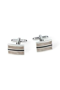 Spinki w kształcie prostokąta wykończonego z przodu żłobieniem wypełnionym czarną i beżową masą jubilerską. Wykonane z mosiądzu w srebrnym odcieniu. Spinki będą dobrym wyborem do koszuli LANCERTO z podwójnym mankietem francuskim. Sprawdzą się w różnych stylizacjach np. podczas ceremonii ślubnej, ważnej uroczystości rodzinnej lub spotkania biznesowego.