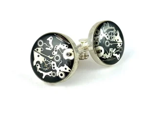 Wyjątkowa ozdoba dla osób, które lubią unikatowe i piękne dodatki na co dzień. Każda z par jest unikatowa i może różnić się od siebie w użytych trybikach :-) Garść danych: - Średnica: 2 cm - Baza spinek - Stal p ...