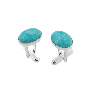 Srebrne spinki do mankietów Amazonit 14x10 w oprawie (S1194)
