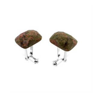 Srebrne spinki do mankietów Jaspis Zielony - Unakit (S813) Srebro [925] - S813 Srebrne spinki do mankietów Jaspis Zielony Spinki do mankietów wykonane ręczni...