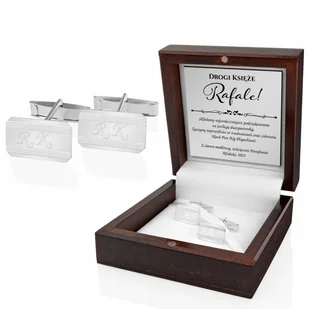 Spinki do mankietów koszuli pr. 925 z grawerem dedykacji na pożegnanie księdza Srebrne spinki do mankietów z grawerem dedykacji