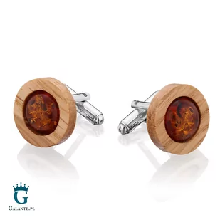 Srebrne Spinki do Mankietów "Polski Las" z Bursztynem SMD-006
