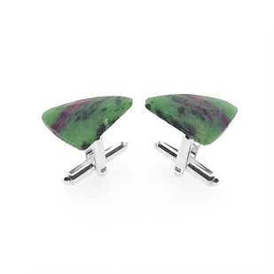 Srebrne spinki do mankietów Rubin z zoisytem Wykorzystane materiały to srebro próby 925 i unikalny w kształcie trójkąta rubin z zoisytem. Wymiary spinki to 1...