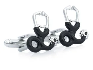 Srebrno-czarne spinki do mankietów dla lekarza - stetoskop AU261 Wykonane z najlepszej jakości stopów metali srebrne spinki do mankietów - stetoskop. Idealne na prezent dla wszystkich osób związanych z służbą zdrowia. Zestaw zawiera: 2 sztuki spinek do mankietów Materiał: stal szlachetna Opakowanie: