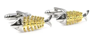 Srebrno-złote spinki do mankietów - rybi szkielet U108 Srebrno-złote spinki do mankietów - rybi szkielet. Zestaw zawiera: 2 sztuki spinek do mankietów Materiał: stal szlachetna Opakowanie: eleganckie pudełeczko Wysokiej jakości wykonanie Unikatowy wzór Spinki doskonałe na prezent Długość spinki: