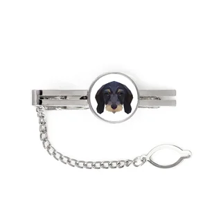 Teckel szorstkowłosy -geometryczna spinka ze zdjęciem i napisem do krawata Art-Dog