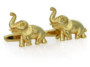 Złote spinki do mankietów - słonie A286 Złote spinki do mankietów - słoniki A286 Zestaw zawiera: 2 sztuki spinek do mankietów Materiał: stal szlachetna Opakowanie: eleganckie pudełeczko Wysokiej jakości wykonanie Unikatowy wzór Spinki doskonałe na prezent Wymiary spinek: ok. 2 cm x 1,7 cm Wzór: