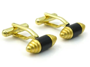 Złoto-czarne spinki do mankietów U179 Złoto-czarne spinki do mankietów. Wymiary spinek: ok. 2cm x 0,8cm. Zestaw zawiera: 2 sztuki spinek do mankietów Materiał: