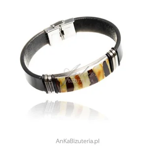 ankabizuteria.pl Bransoletka męska ze skóry i bursztynu ze stali szl
