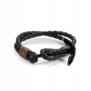 BETLEWSKI® bransoletka męska, skóra naturalna, rzemyki, kotwica Czarna bransoletka męska marki Betlewski® to wyjątkowy dodatek, gdyż: