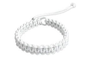 Bransoletka pleciona wiązana Ręcznie pleciona bransoletka wykonana ze sznurka jubilerskiego w białym kolorze. Posiada regulowany obwód, za pomocą ruchomego w...