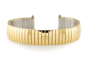 Metalowa bransoletka wysokiej jakości w kolorze złotym z możliwością rozciągnięcia oraz z regulacją szerokości mocowania.