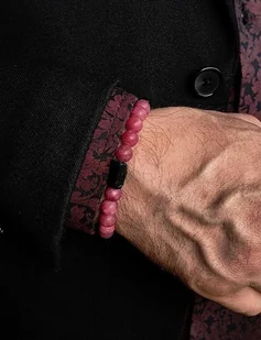 BRANSOLETA męska Różowa KOLEKCJA STONES Amulet Bransoletka dla mężczyzny, która nadaje charakteru, a do tego ma swoje moce Wykonałam ją z naturalnych kamieni. Sercem jest naturalny surowy czarny turmali ...