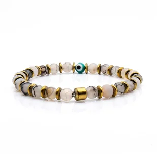 Bransoletki od EM Men's Accessories to produkowane w Polsce unikatowe dodatki, które będą będą doskonałym uzupełnieniem stroju każdego eleganckiego mężczyzny. Szeroka oferta naszych produktów pozwala na dobranie zarówno idealnej biżuterii dla siebie jak i znalezienie wspaniałegoupominku. Prezentowana bransoletka to piękne połączenie okrągłychelementówoczerwonym zabarwieniu orazmetalicznych i brązowych o innym kształcie. Całość posiada interesującą strukturę, która sprawia, że bransoletka prezentuje się szlachetnie. Materiał: rozciągliważyłka, koraliki, kamienie naturalne Dominujące kolory: