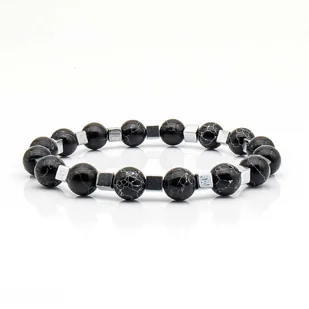 Bransoletki od EM Men's Accessories to produkowane w Polsce unikatowe dodatki, które będą będą doskonałym uzupełnieniem stroju każdego eleganckiego mężczyzny. Szeroka oferta naszych produktów pozwala na dobranie zarówno idealnej biżuterii dla siebie jak i znalezienie wspaniałegoupominku. Prezentowana bransoletka to piękne połączenie okrągłychelementówoczerwonym zabarwieniu orazmetalicznych i brązowych o innym kształcie. Całość posiada interesującą strukturę, która sprawia, że bransoletka prezentuje się szlachetnie. Materiał: rozciągliważyłka, koraliki, kamienie naturalne Dominujące kolory: