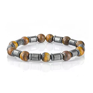 Bransoletki od EM Men's Accessories to produkowane w Polsce unikatowe dodatki, które będą będą doskonałym uzupełnieniem stroju każdego eleganckiego mężczyzny. Szeroka oferta naszych produktów pozwala na dobranie zarówno idealnej biżuterii dla siebie jak i znalezienie wspaniałegoupominku. Prezentowana bransoletka w kolorzeżółto-szarymto piękne połączenie okrągłych koralików o ciekawym zabarwieniu orazmetalicznycho innym kształcie. Całość posiada interesującą strukturę, która sprawia, że bransoletka prezentuje się szlachetnie. Materiał: rozciągliważyłka, koraliki Dominujące kolory: