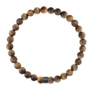 Bransoletka męska brązowe kulki tygrysie oko z czarnym charmsem.