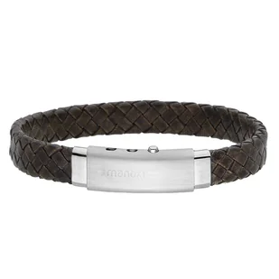 Bransoletka męska brązowy płaski pleciony rzemień Klasyczna męska bransoletka pleciony rzemień w brązowym kolorze z satynowanym, stalowym zapięciem. Rzemień z efektem vintage - przecierany. Zapięcie doskonale nadaje się na umieszczenie na nim indywidualnego grawerunku. Kolor: Brązowy, srebrny Materiał: stal szlachetna, rzemień naturalny Obwód wewnętrzny: