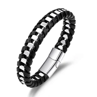 Bransoletka męska czarna pleciona ze srebrnymi elementami Bransoletka męska czarna pleciona ze srebrnymi elementami Bransoletka męska czarna ze srebrnym wykończeniem – minimalizm z klasą Dla fanów nowoczesnej elegancji Bransoletka wykonana z naturalnej skóry w kolorze czarnym i srebrnych metalowych elementów przyciąga wzrok stylowym kontrastem i precyzją wykonania. Idealna dla mężczyzn, którzy lubią prostotę z charakterem. ? Zalety: ✔️ Skórzany pleciony design z metalowym akcentem ✔️ Srebrne zapięcie magnetyczne – trwałe i bezpieczne ✔️ Idealna na co dzień i na specjalne okazje ✔️ Świetny pomysł na prezent dla niego Dane techniczne: Materiał: skóra naturalna + stal nierdzewna Długość: 21 cm Szerokość: