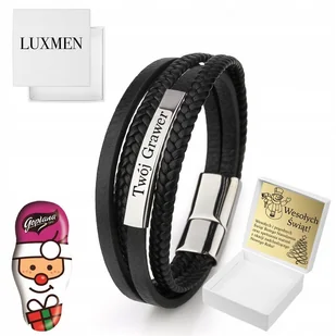 Nie trać czasu na szukanie prezentów - podaruj swoim bliskim piękną biżuterie która zostanie z nimi na lata! ❗️ Uczyń Twój prezent wyjątkowym i dodaj swój grawer ZA DARMO❗️ - więcej szczegółów na dole aukcji Zaprojektowana we Włoszech wyłącznie dla firmy LUXMEN® Nowa kolekcja 2023/2024. ✅Prawdziwa, pleciona, jagnięca skóra! ✅Metalowe fragmenty wykonane ze stali szlachetnej pokrytą warstwą srebrna - najwyższa próba 925. ✅Bransoletka idealnie sprawdzi się jako dodatek do codziennych stylizacji, jak również na prezent świąteczny dla bliskiej Ci osoby. ✅Długość bransoletki: 20,5 cm - pasuje na większość męskich nadgarstków.