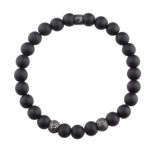 Bransoletka Męska czarne matowe kulki onyksu.