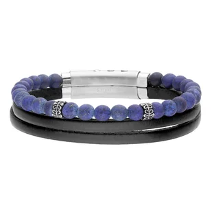 Bransoletka Męska czarne skórzane rzemienie i niebieskie koraliki lapis lazuli.