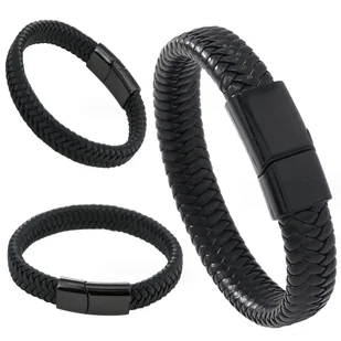 Elegancka bransoletka męska ręcznie solidnie pleciona skórzana czarna Cechy produktu: Bransoletka męska pleciona to ozdobny dodatek wykonany z skóry ekologicznej która jest ręcznie pleciona. Jest popularna w męskiej modzie ze względu na swój stylowy wygląd i uniwersalność. Może być noszona zarówno na co dzień, jak i na bardziej formalne okazje, dodając charakteru i elegancji męskiej stylizacji. Bransoletka wyposażona jest w magnetyczne zapięcie, które ułatwia ich zakładanie i zdejmowanie.