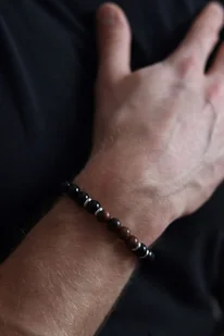 Stal chirurgiczna jest materiałem odpornym na działanie wody, co zapewnia długowieczność i trwałość bransoletki. Dodatkowo, stal chirurgiczna nadaje eleganckiego i nowoczesnego charakteru, co sprawia, że bransoletka męska jest odpowiednia na wiele okazji. Przekładki ze stali chirurgicznej w kolorze srebra doskonale kontrastują z ciemnym odcieniem onyksu oraz drewna egzotycznego, tworząc efektowną całość. Doskonały wybór na prezent Bransoletka męska kamienie to nie tylko elegancki dodatek, ale także doskonały wybór na prezent dla partnera, na Dzień Ojca, czy Dziadka. Dzięki swojej unikalnej kompozycji, będzie idealnym wyborem dla każdego mężczyzny, który ceni sobie naturalne materiały, elegancję oraz subtelną siłę kamieni.