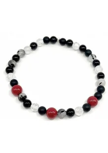 Bransoletka wykonana na gumce Kamień: Koral+ Agat+ Kwarc+ Kryształ Rozmiar kamienia: 6mm Rozmiar uniwersalny. Produkt wykonywany ręcznie.