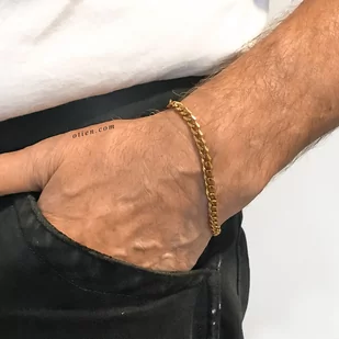 Bransoletka męska pancerka złota 5mm Szczegóły: Długość całkowita: do wyboru: 18 cm, 21 cm, 23 cmSzerokość: 5 mmSplot: pancerkaRegulacja: brakKolor: złotyTworzywo: