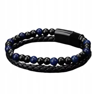 Bransoletka Męska Czarna Skóra Pleciona Kamień Naturalny Lawa Wulkaniczna