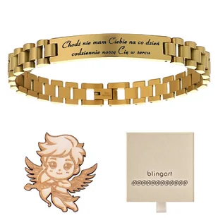 Bransoletka męska pozłacana stalowa Z GRAWEREM ele ✴️ Walentynki to najpiękniejszy dzień w roku, gdy serca biją jednym rytmem, a miłość splata nas w magiczny taniec uczuć. ✴️ Każda chwila staje się delikatnym wyznaniem, każde spojrzenie iskrzy czułością, przypominając, jak wyjątkowa jest więź, która łączy dwa zakochane serca. ✴️ Biżuteria podarowana w Walentynki opowie historię Waszej miłości i nie pozwoli zapomnieć o magii tego wyjątkowego dnia. ✴️ Pokaż, jak bardzo kochasz i podaruj miłość w najpiękniejszej formie – wybierz idealny prezent dla ukochanej osoby. Długość: 22,5 cm Szerokość: