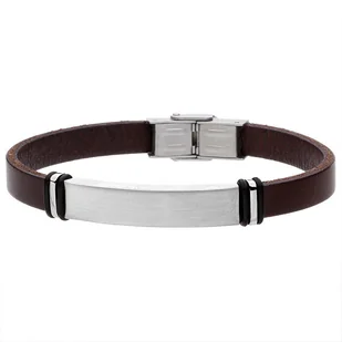 Bransoletka wykonana z naturalnej skóry w kolorze brązowym, wykończona antyalergiczną stalą szlachetną 316L. Jedyne zdobienie stanowi satynowany element doskonale nadający się do grawerowania. Kolor: Brązowy, srebrny Materiał: stal szlachetna, skóra naturalna Obwód wewnętrzny: ~20 cm (możliwość samodzielnego skrócenia) Szerokość: