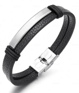 Bransoletka męska skórzana czarna stal srebrna 21cm Bransoletka męska skórzana czarna stal srebrna 21cm Bransoletka męska skórzana czarna stal srebrna 21cm Stylowa bransoletka męska wykonana z wysokiej jakości czarnej skóry ekologicznej z eleganckim srebrnym elementem ze stali nierdzewnej. Dwa wąskie paski tworzą nowoczesny i subtelny design, który pasuje zarówno do codziennych, jak i eleganckich stylizacji. Parametry: Długość: 21 cm Szerokość całkowita: ok.