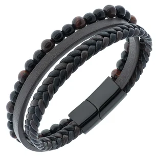 Rząd koralików to ułożone na przemian kamienie naturalne o nazwie onyks i tygrysie oko. Onyks jest kamieniem o czarnej barwie, natomiast tygrysie oko wyróżnia się pasmami mieniącymi się w odcieniach brązu. Całość wspaniale ze sobą współgra i tworzy niesamowity efekt. Skórzana bransoletka męska posiada wygodne i praktyczne zapięcie magnetyczne wypolerowane na wysoki połysk. Zapinane od boku daje Ci gwarancję, że biżuteria nie rozepnie się w najmniej oczekiwanym momencie.