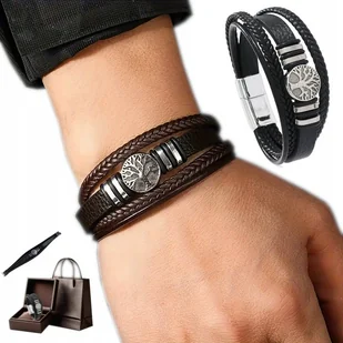 Bransoletka Męska Skórzana Tytanowa Włoska Elegancka Bransoleta Na Rękę