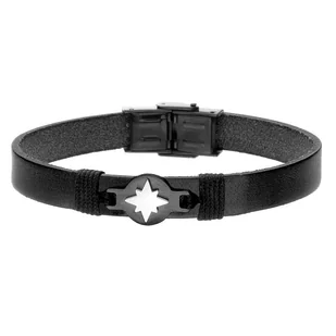 Bransoletka męska skórzana z czarną różą wiatrów – modny dodatek z czarnej skóry